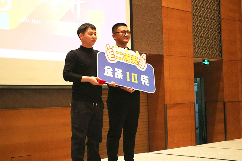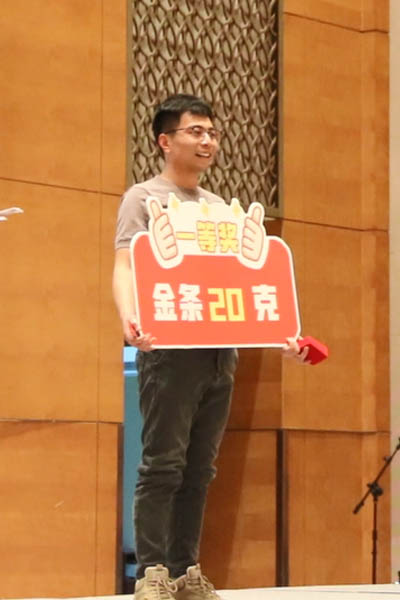 隨著三等獎(jiǎng)的抽出,晚會(huì)氣氛達(dá)到一個(gè)小高潮。幸運(yùn)兒們滿心歡喜地領(lǐng)取了獎(jiǎng)品5克金條。